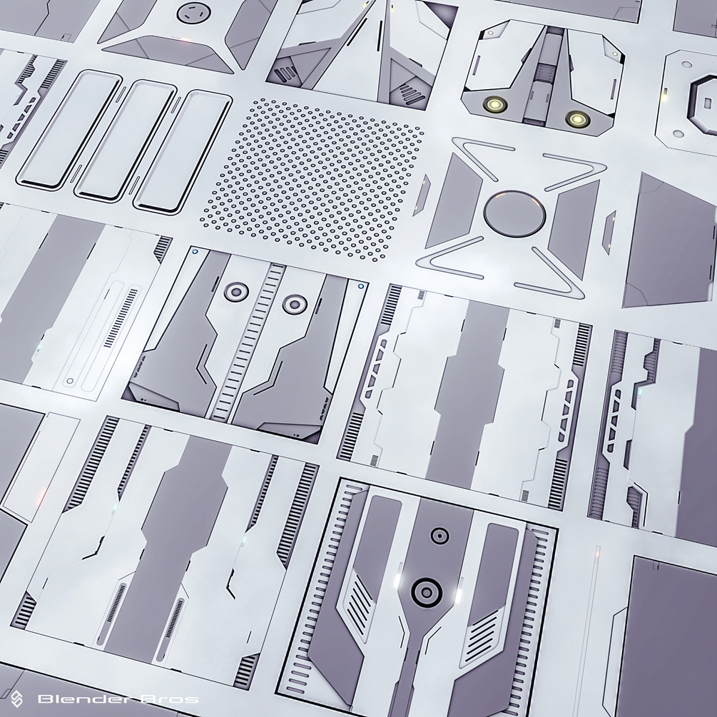 SciFi Floor Decal Pack for Blender, decal machine ready, max res bakes (2k), flawless shading.