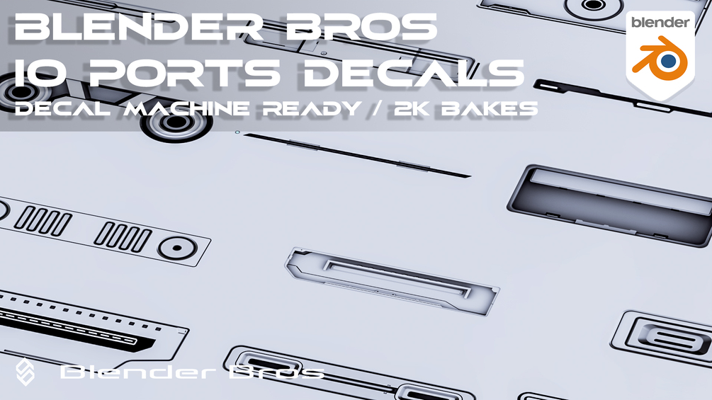 IO Ports Decal Pack for Blender, decal machine ready, max DM res bakes (2k), flawless shading.